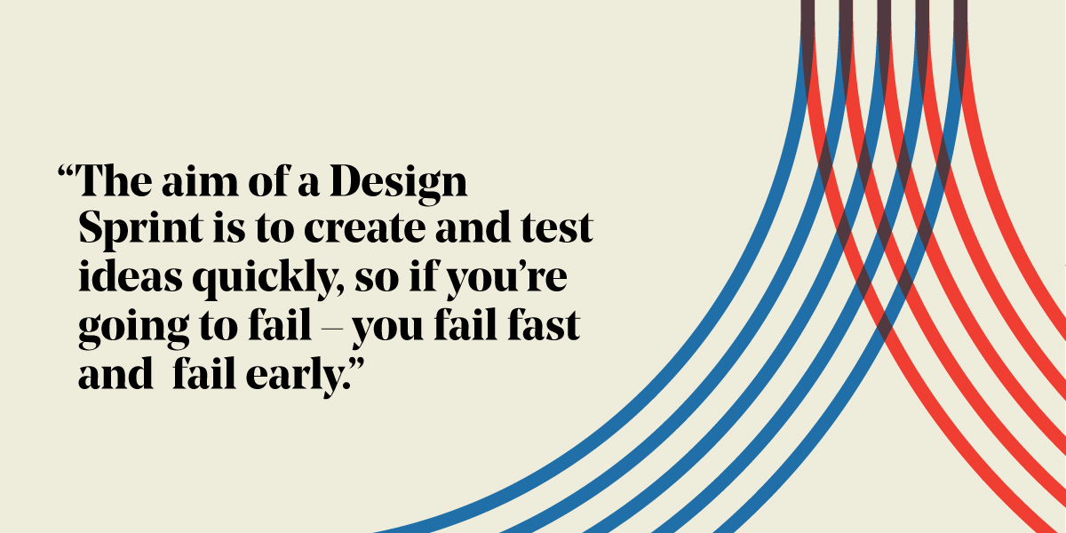 The aim of a Design Sprint is to create and test ideas quickly, so if you’re going to fail, you fail fast and fail early. You move through the process rapidly so you make decisions quickly and avoid getting too wedded to early ideas. Prototypes are low fidelity – something that can be made in a day – with enough functionality to get early feedback from stakeholders. Ultimately, whatever you learn from your user testing on the Friday, you’ll have uncovered an enormous amount of information helping to steer next steps.