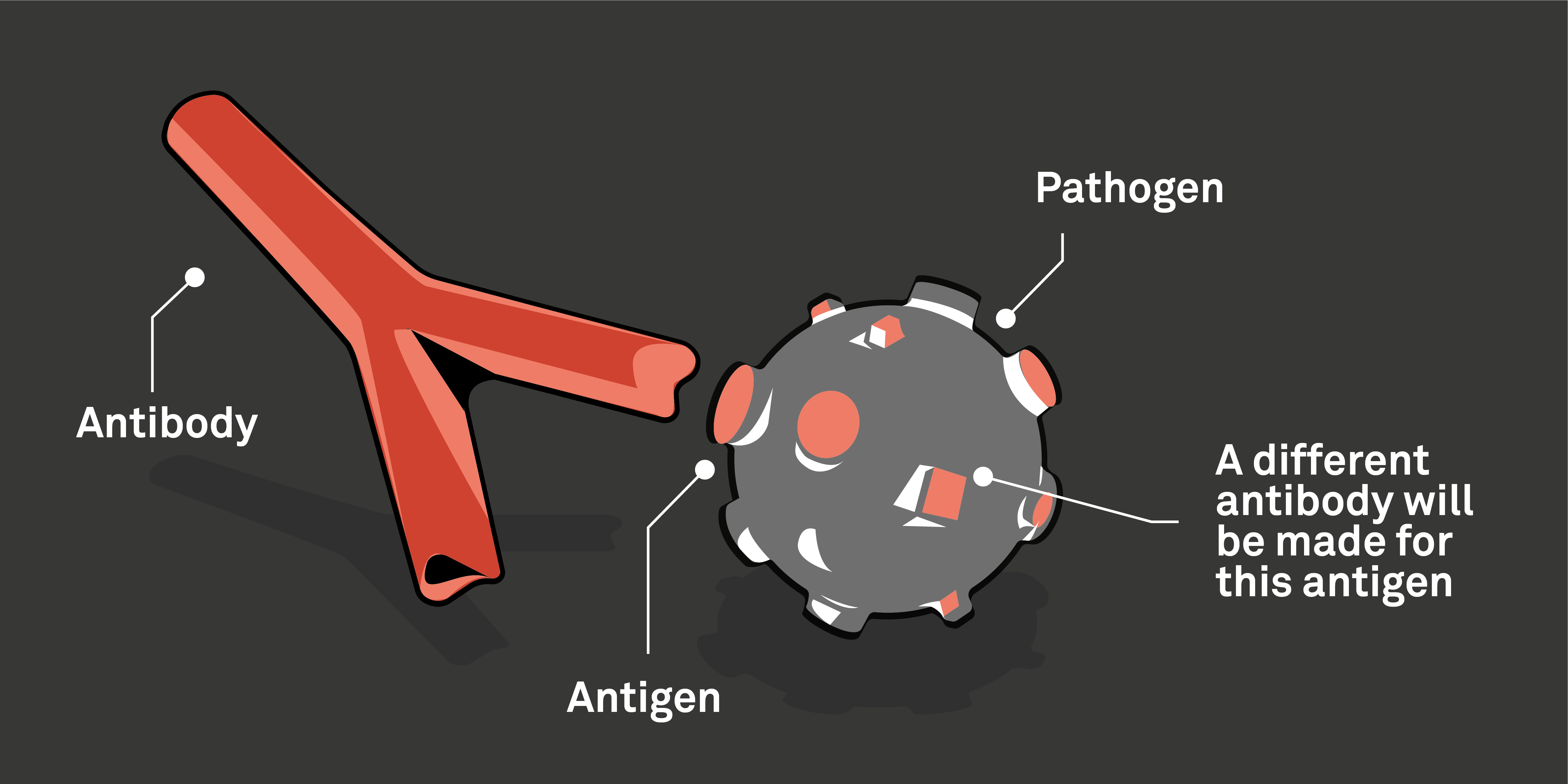 Antibodies are capable of very selective binding (high specificity binding) with the antigen that triggered their production.  What this means in practice is that in a complicated mixture of biomolecules, such as blood, the antibodies can bind to their specific antigen and stick to it. This property makes antibodies a genuine life saver as part of the body’s immune response by detecting foreign molecules. Specific binding also makes antibodies the cornerstone of diagnostic immunoassays.
