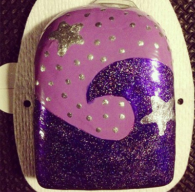 What is more interesting, to me at least, is the ‘grassroots’ decoration of the OmniPod in particular. People are taking the OmniPod (maybe because it is the blankest canvas, and seems to invite decoration) and painting it with nail varnish and glitter, and sticking all manner of objects to it. You might need an Instagram account to see these, but a quick search reveals some really lovely enhancements that challenge the idea that the pump has to remain hidden and anonymous. There’s even an Instagram hashtag #pimpmypod for people to celebrate the best in pump art.