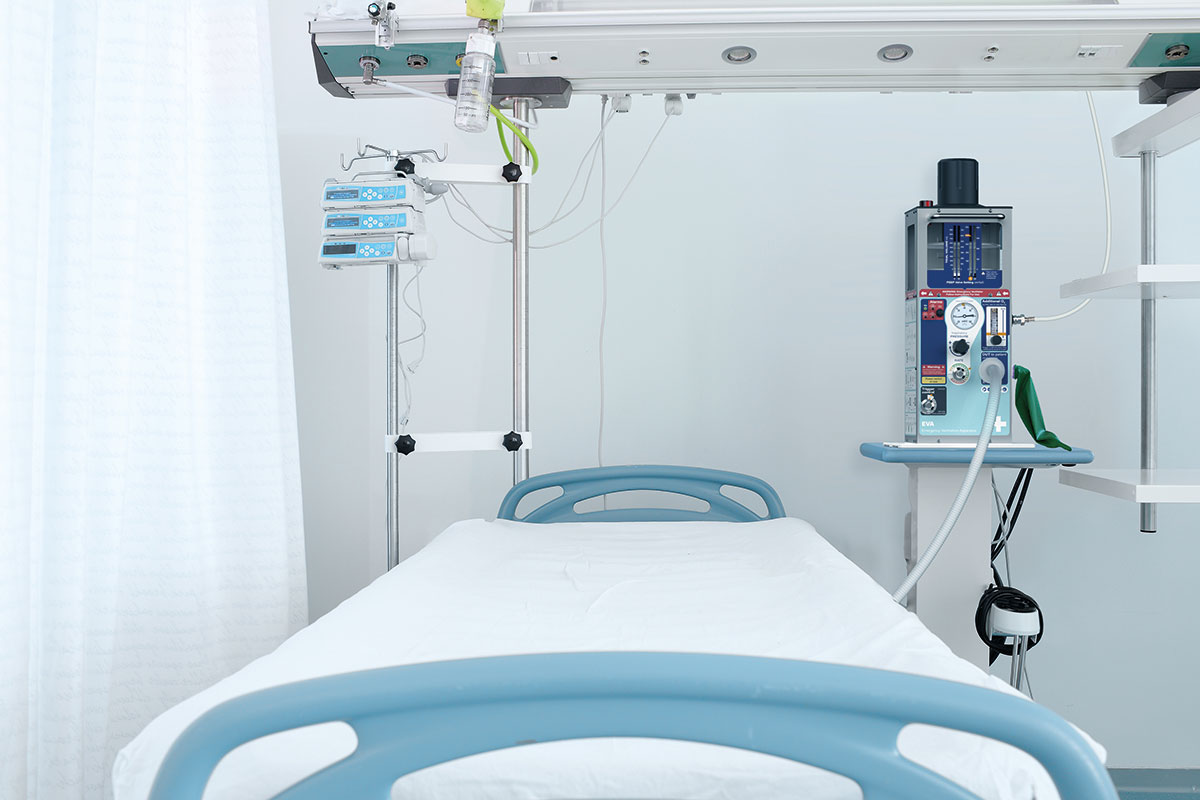 View of Team's Emergency Ventilator Apparatus next to a hospital bed