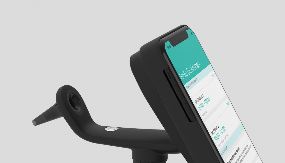 The device features a simple user interface that allows image capture, data entry and diagnosis to be carried out in the designated smartphone App. Image enhancement is achieved via integrated precision optics, while the ear speculum allows access for a micro-suction probe for ear wax removal.
